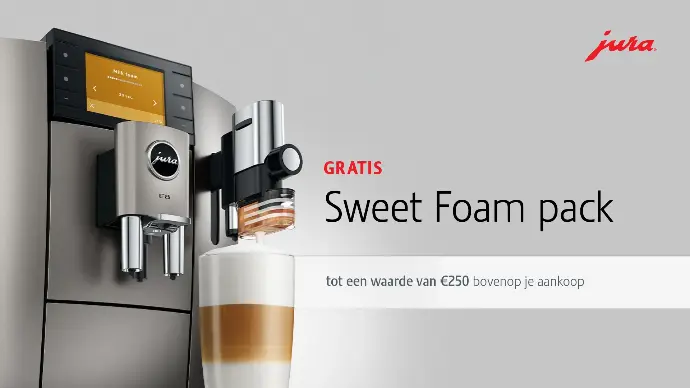 Ontvang een Sweet Foam pack t.w.v. tot 250 euro bij aankoop van een deelnemend Jura toestel.